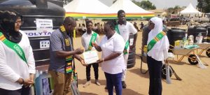 Mrs Jennifer Dede Adjabeng, the Municipal Chief Executive (MCE) for La Nkwantanang-Madina Municipal Assembly on behalf of the Assembly presented assorted items to forty Persons